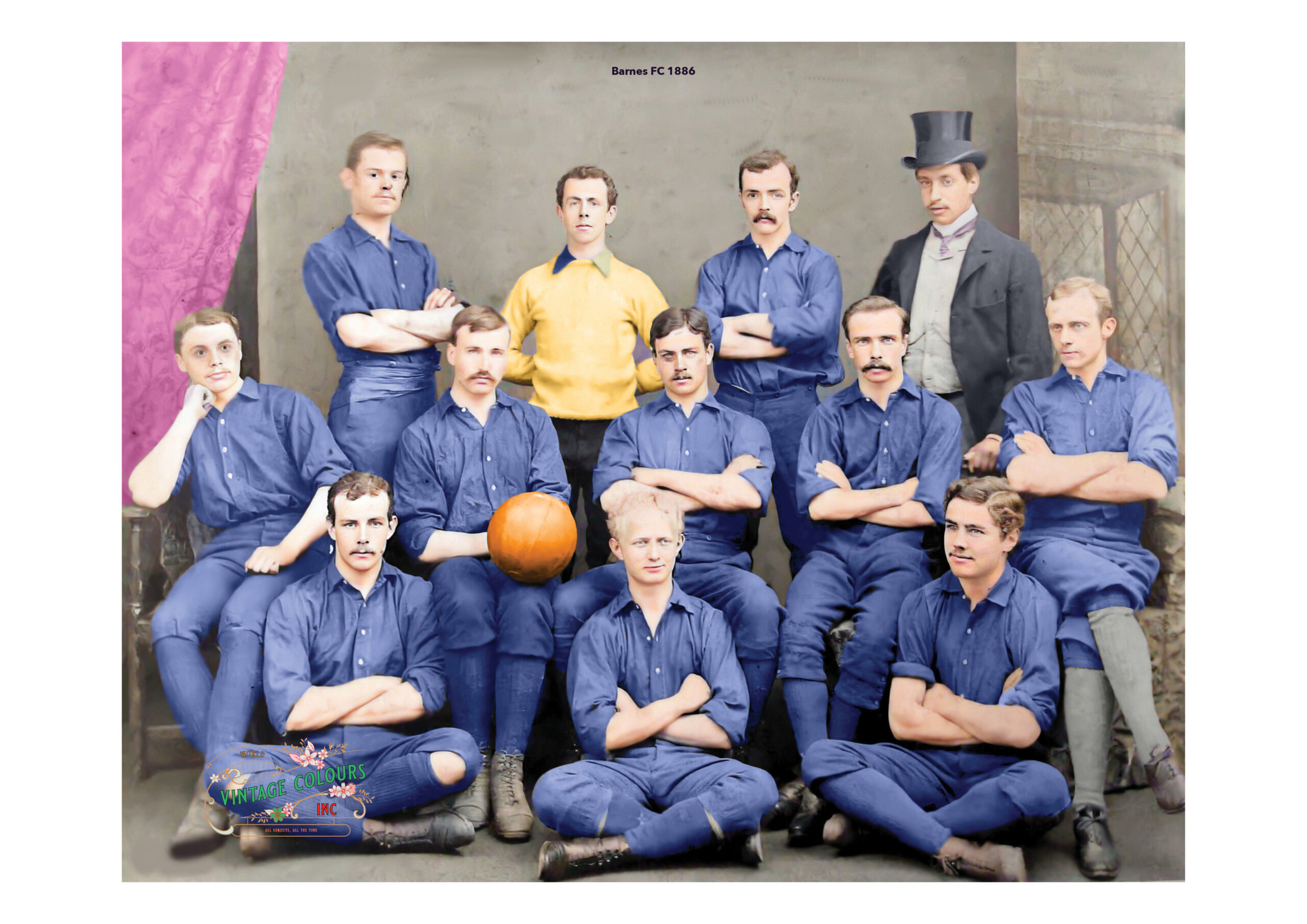 Beautiful colourised print of Barnes FC in 1886. Barnes was one of the original clubs that helped to shape the rules of the game.